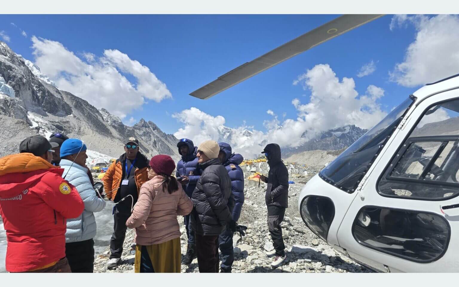 Home Minister Ramesh Lekhak and Minister for Culture, Tourism and Civil Aviation, Badri Pande, embarked on a noteworthy visit to the Sagarmatha base camp today. Entering via helicopter, the ministers aimed to evaluate crucial matters concerning mountain climbers, tourism, and the overarching peace and security situation in the region.