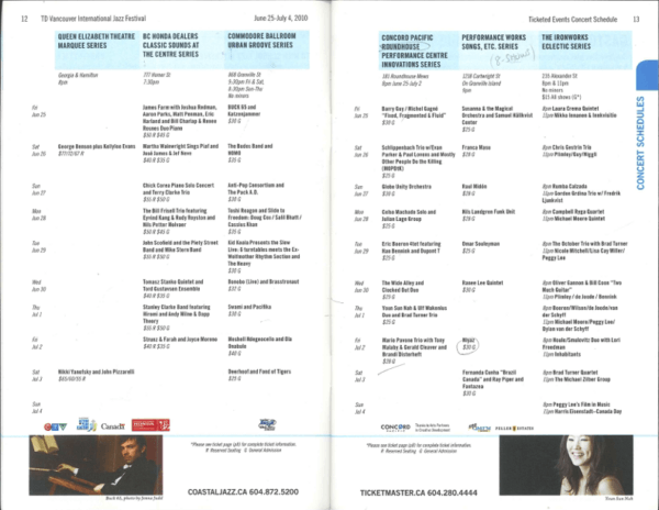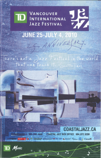 În 2010, Festivalul Internațional de Jazz de la Vancouver a marcat o etapă importantă: cea de-a 25-a aniversare a sa. Directorul artistic al festivalului, Ken Pickering, a reflectat asupra modului în care organizația Coastal Jazz a contribuit atât la succesul festivalului, cât și la legătura acestuia cu orașul vibrant Vancouver.